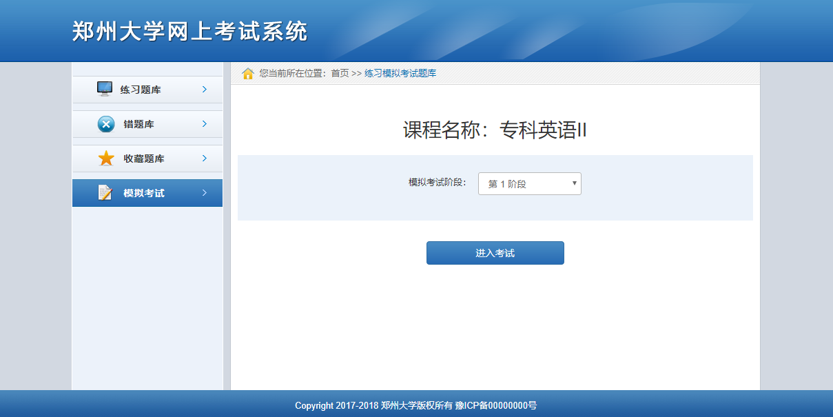 學(xué)生可點(diǎn)擊開始考試進(jìn)行模擬考試練習(xí)。