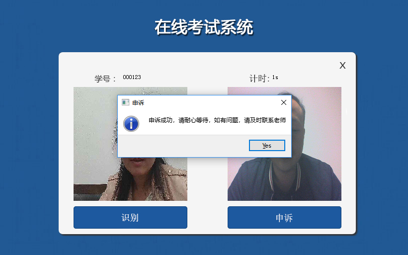 如本人識(shí)別不通過的情況下,可點(diǎn)擊【申訴】按鈕進(jìn)行照片申訴,管理員審核通過后方可再次進(jìn)行人臉識(shí)別比對(duì),比對(duì)通過后方能進(jìn)行網(wǎng)上考試。