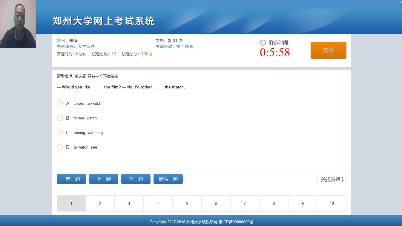 1、必須學(xué)生本人參加考試,考試環(huán)境必須相對(duì)封閉,考試過程中盡量避免攝像頭中出現(xiàn)其他人員。