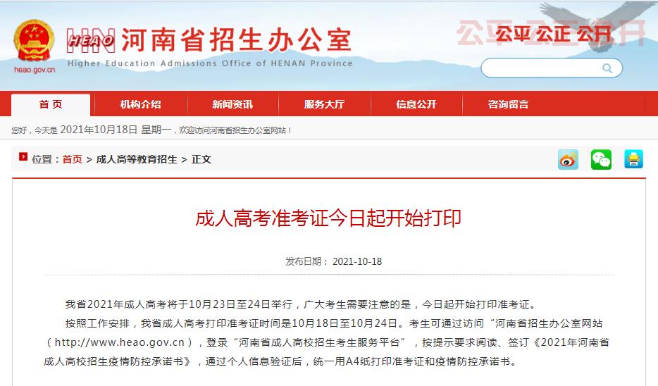 今日河南招生辦公室發(fā)布了《成人高考準(zhǔn)考證今日起開始打印》的通知,