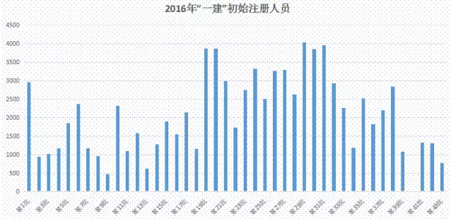 2016年,住建部共發布43批一級建造師初始注冊人員名單,總人數共計89594人。