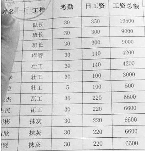網上流傳的這張圖,也許很多人都不陌生,這是某個工地上建筑工人的工資單。班長收入過萬,普通的工人也可以達到6、7千,這或許對于一些普通企業中的基層員工而言,是一個值得羨慕的工資。