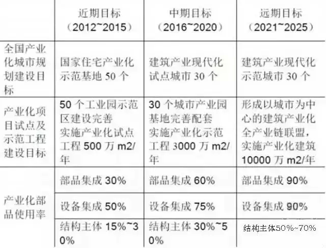住建部將出臺政策推動建筑產(chǎn)業(yè)現(xiàn)代化,初步確定的發(fā)展目標(biāo)是: