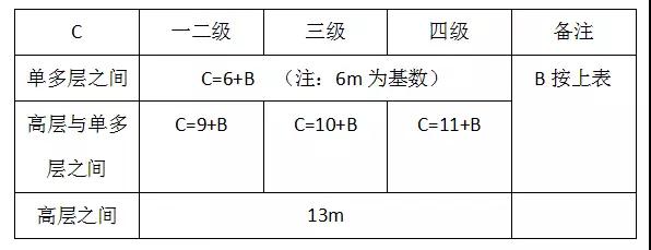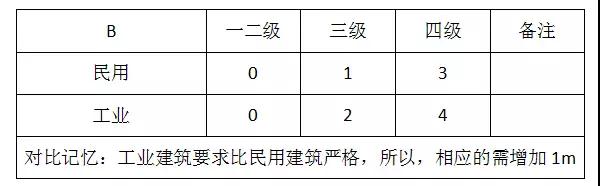 1.GB50016中民用建筑的防火間距,只要記住高層建筑之間13m,單多層一二級之間6m,這兩個數字即可,對照工業建筑防火間距C=A+B的計算公式,按下表取值計算,既可以記憶民用建筑的防火間距,同時又可以記住工業建筑的防火間距,做到一舉兩得。
