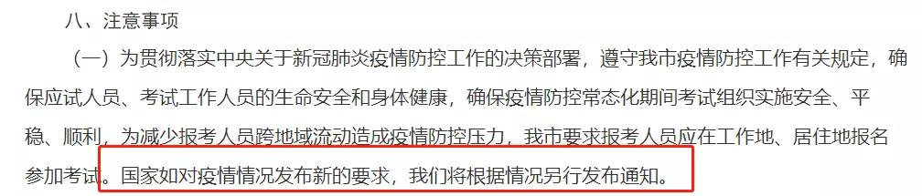 (八)除上述要求外,請考生持續(xù)關注考前的疫情防控形勢并遵從所報市級考區(qū)當?shù)氐囊咔榉揽鼐唧w要求。